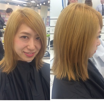 ブリーチ後にシャンプー台で下地を作ることで、ブリーチのムラも出ず、キレイな金髪になりました!そして仕上げのオンカラーに今回使用したのは、ヘルシーシナモン♡♡
