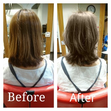長さは変えたくないけど、雰囲気は変えたいというオーダーのお客様。カットはくびれがつくようにカットをして、カラーリングは柔らかい雰囲気のセンシュアルグレーで毛先までカラーリング!
