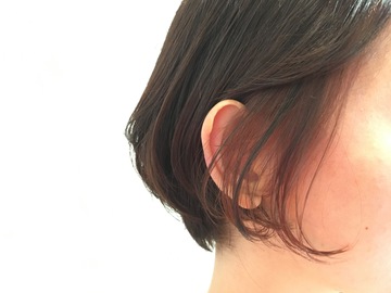 耳にかける部分のみブリーチしてからピンクバイオレットで全体カラーしています☆