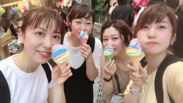 レインボーアイスと牛串を食べるのが