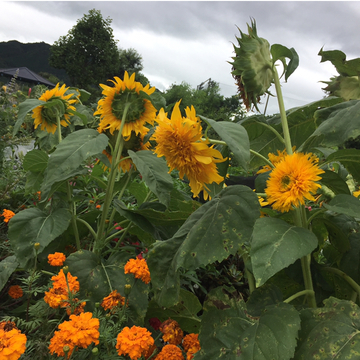 スッキリしないお天気でお庭の向日葵も