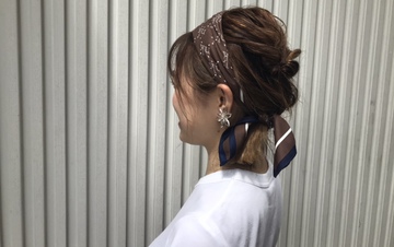 ただのくるりんぱで真ん中に一つ結びでも、写真のような片方に寄せて一つ結びでも、ターバンを巻くだけで一気に凝ったヘアアレンジになります☺︎