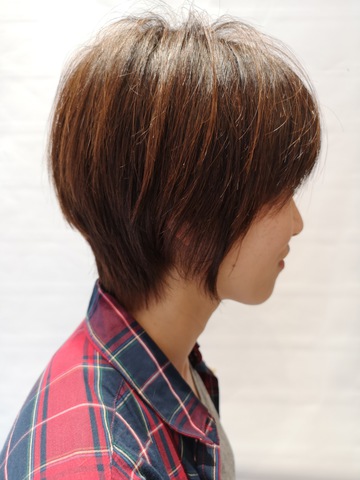 耳回りと襟足の長さをやや残したショートスタイルです。
