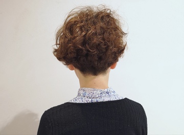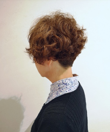 襟足を刈り上げ、前髪を短く切り込んで、リッジ感のあるパーマをかけたアニーみたいなボブスタイルです。
