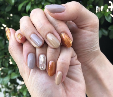 フロムでは、ブラウンやミラーネイルを取り入れたデザインが人気なのですが、ニュアンスネイルは何柄と言うわけでもなく、何色と言うわけもなく。。何とも言い表せない所が可愛いネイルです!他の人と違う感じを出したい方にもオススメです♡