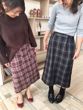 チェックのスカートがたまたま釜井さんとお揃いになりました!
