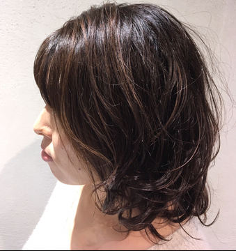 ベースは今までと明るさをかえずにハイライトを入れてあげる事によって、トーンアップした様に見えパーマスタイルもより立体的に見えます!