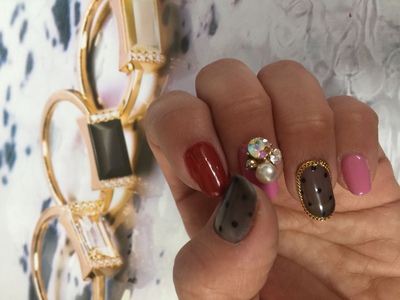 ホワイトデーが近いのでドットにビジューでキラキラにしてみました!