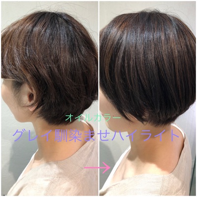 グレイ(白髪)馴染ませハイライトにオイルカラーでツヤを出しました!