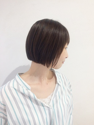 リップラインまでのボブで、襟足もかなり短く切り、個性的なボブスタイル!