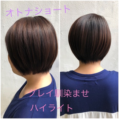 ハイライトを入れ白髪を馴染ませる事により白髪が、目立だ無くなります。