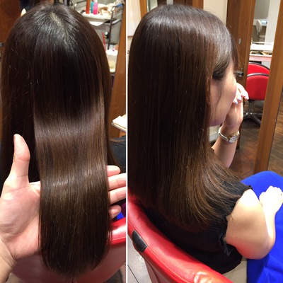 トリートメントでは、もわっとしてしまう髪をツルッとさせたいとのご要望だったので、保湿できる種類をメインに髪の表面を整える種類を毛先の15センチにつけさせていただきました。