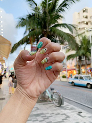 先日の家族旅行で沖縄へ行ってきましたが、私のネイルは『シークワーサー』にしてみました♡沖縄といえば、シークワーサー‼︎国際通りのヤシの木をバックに♡南国の風が私のネイルも華やかにしてくれました!