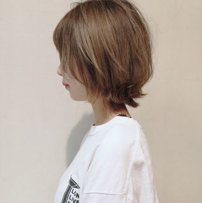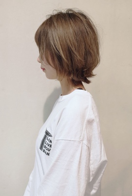 ダブルブリーチからのミルクティーベージュカラーを入れた外はねボブスタイル◯