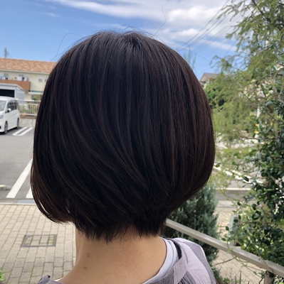 スッキリした青空の下、ボブ→ショートに