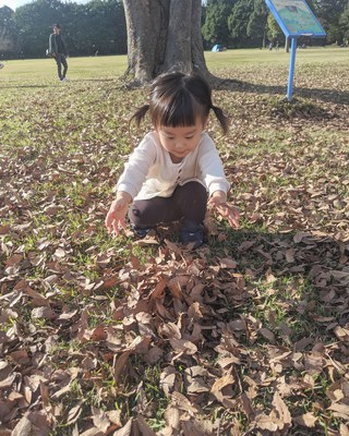 落ち葉や枝がたくさん落ちていて子供達もたくさん遊んでいま