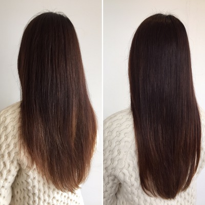 しっかり水分が入ったことで、褪色していた髪の色も落ち着いたように見せることができたのも驚きでした!!
