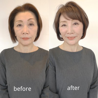 トップにボリュームがでてきますし、全体的にリフトアップします。 カラーリングでも細かいハイライトを顔周りに入れてカラーすることで、より立体的な印象にしています。