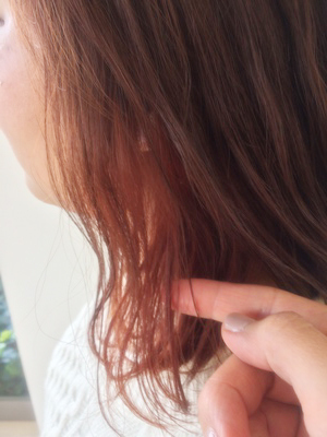 頭の半分下をブリーチして、明るくなったところに、ヌーディピンクをい