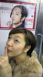 山手線内ポスターの下でポーズをとってくれたのは