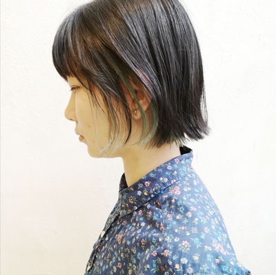 まだまだ人気の『インナーカラー』 さりげなく見せたい、仕事でブリーチはできない、といった方にもオススメなカラーです。 今回はワンブリーチをしてから『エメラルド』を入れたインナーカラーです。
