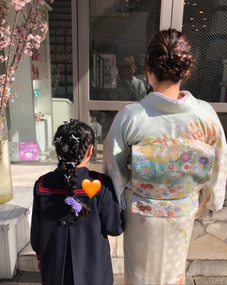 ママさんはステキなお着物だったので、上品なルーズなsetでまとめさせて