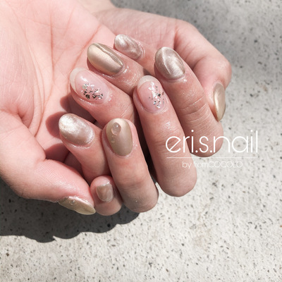 新色のミラーネイルをマットで仕上げて、ぷっくり水滴を。