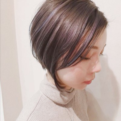 前下がりのクールな印象に透明感グレージュが相性バッチリですね。