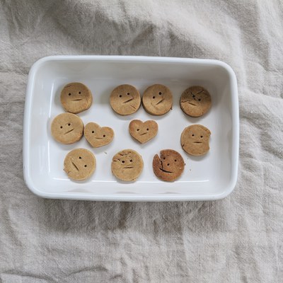 米粉ときな粉、オリーブオイル、きび砂糖、牛乳をよく混ぜて型抜きをしました*