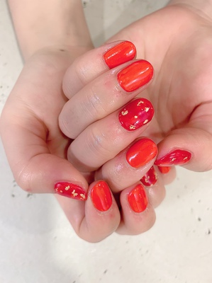 お客様は、マットな仕上がりをご希望でしたので、寒色系のお色ではなく、元気が出るレッド、オレンジのお色で仕上げてみました!