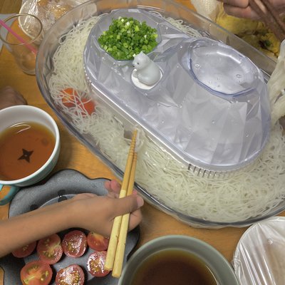 この時期ぴったりの流しそうめん 皆さんぜひお家で