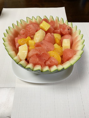 スイカをお皿にして沢山のフルーツを入れました。