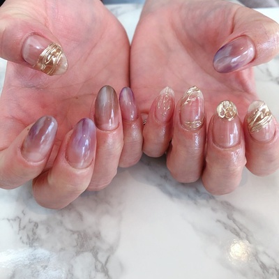 最近人気の、太いリングのようなネイル!ベースをクリアにしたので涼しげな印象になりました♡ゴールドでもシルバーでもかわいいです☺︎