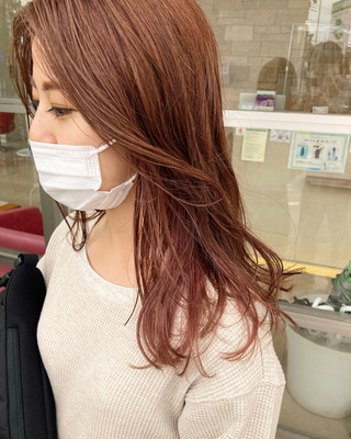 ベースは、ピンクベージュで、インナーにラベンダーピンクを