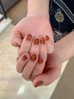 前撮りは無事に終わり、当日はお宮参りでしたが、ママもべっこうネイルでステキな指先になりました♡