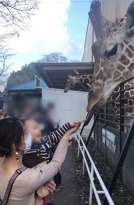 きりんさんへの餌やりが自分から率先して手を差し出して、べろっとされてもけらけら笑って楽しそうにしていました。