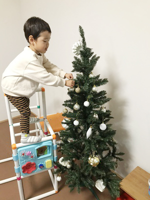 先日、クリスマスツリーを、息子と、飾り付けしましたぁ!
