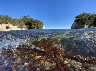 海の水は透き通っていて太陽でキラキラと輝いていました。