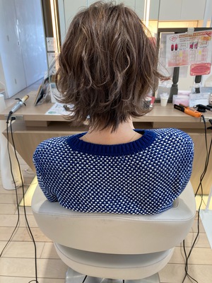仕上げは26ミリのアイロンを使って、波ウェーブにしており、スタイリング剤にN.オイルを使用してます。