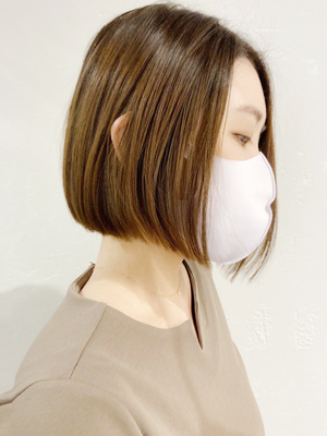 ラインがパツっとしたボブスタイルもかわいいですよね。 かるく内巻きにいれて、