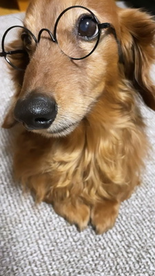 大人しく丸メガネをかけております!