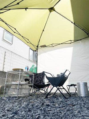 昨日はいい天気だったので、初めてお庭で1人BBQ!