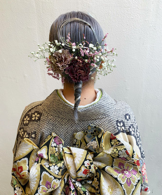 最近のトレンドは小物を取り入れた水引やドライフラワー、生花など