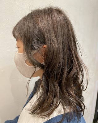 お顔の色味に合うように青が出過ぎないようなカラーをさせていただきました。