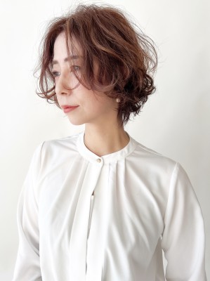 今回はパーマ&ハイライトが入った暖色系カラーのヘアスタイルです。