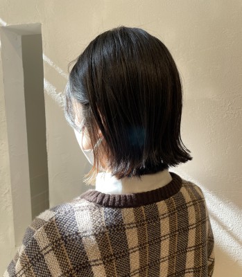 切りっぱなしのボブは毛量の多い方でもアイロンを通すだけでおさまるので
