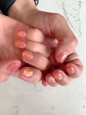 今回は中にフィルムを入れた美味しそーなちゅるんネイルのご紹介です。