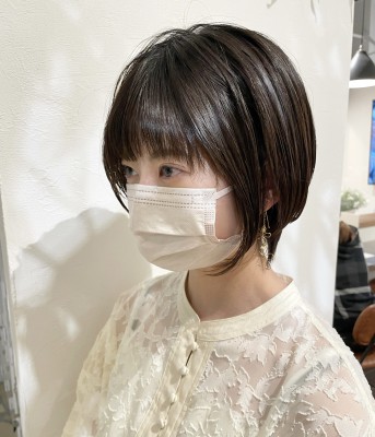 直毛さんの場合、このショートは、襟足、毛先に軽くパーマをかけると手入れがとっても楽になります!