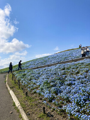 ネモフィラが咲き始め、海とネモフィラのコントラストがすごく綺麗でした。