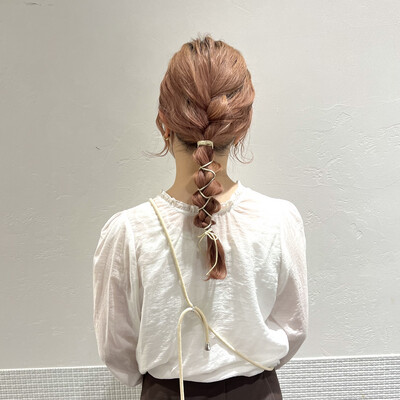三つ編みをしたところに巻き付けるだけでできるのでぜひ挑戦してみてください!